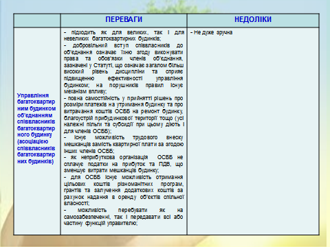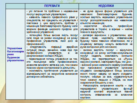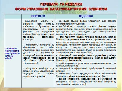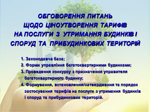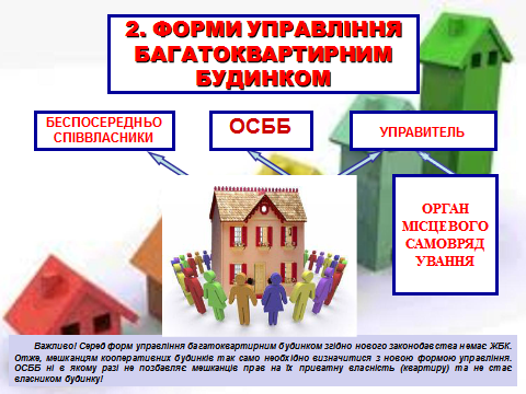 1. Обговорення форм управління багатоквартирними будинками, які передбачені чинним законодавством України та порядку їх визначення.