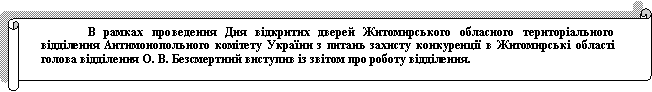 Дня відкритих дверей Житомирського обласного територіального відділення Антимонопольного комітету України з питань захисту конкуренції в Житомирські області