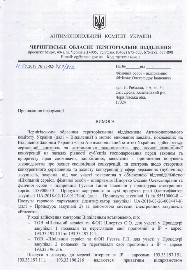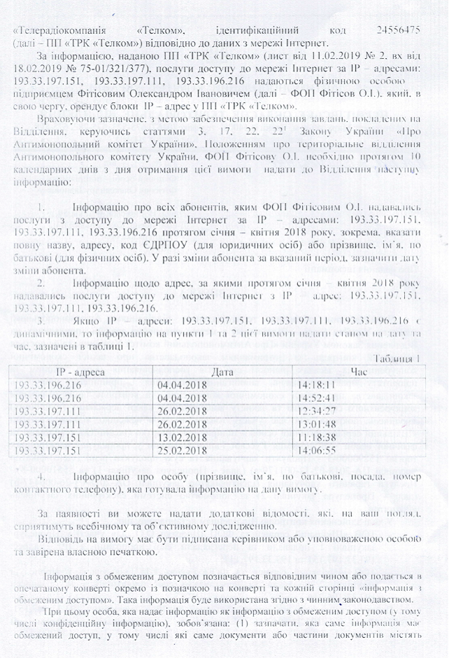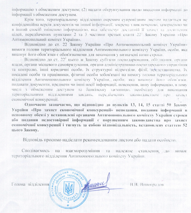 ДО УВАГИ ФОП ДОМАРЕЦЬКОГО О.Ю. Інформація про попередні висновки у справі про порушення законодавства про захист економічної конкуренції № 56-3.5/19-2018 та розгляд зазначеної справи на засіданні адміністративної колегії Житомирського обласного територіального відділення Антимонопольного комітету України